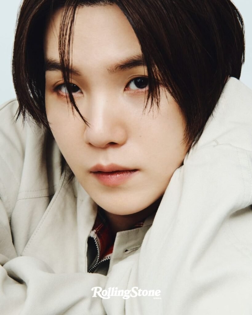 The third member of the group’s rap line, the cerebral, mysteriously charismatic Suga, isn’t sure there was ever a question. “There’s no way for me to know everyone’s individual thoughts and desires,” he says, “but we all went solo because we couldn’t work in a group at the time. So before going into the military, I knew we were always gonna get back together. But I can see how it could be surprising from a foreign perspective. But for us, staying together just felt obvious. So, nobody really had opinions about that. I just thought, ‘Yeah, of course we’re doing this.’”