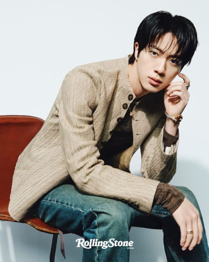 Once Jin’s solo tour wrapped, he made his way to the studio, where he discovered more than a hundred songs already written. “I was worried fans would be bored while everyone was in the military,” he says, “so there I was soothing the hearts of our fans. Meanwhile, all the songs got made.” Is he frustrated? “I’m a little bummed. But there’s more to life than just the present. There’s the future. Plus, if I had been greedy and pushed the whole session so I could add my own songs, this interview would be happening months from now. Wouldn’t the fans be too bored during that time?”